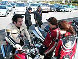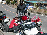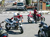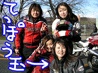 連絡がうまく取れなかったよっさん&きよちゃんご夫婦とは道志で待ち合わせをすることになっていた。ちょい風邪気味のよっさんはクルマで、きよちゃんはモンスターを駆って、それぞれ自宅を出発したとの連絡を頂いた。ところが彼らの自宅周辺は渋滞していたようだ。当然バイクのきよちゃんは『先に行ってるねっ♪』とよっさんを振り切り先を急ぐことになる。その数十分後・・・旦那をぶっちぎた弾丸娘は案の定道に迷っていた(笑)『ほへ?ここはどこ?わたしはだれ?(ToT)(ToT)(ToT)』。弾丸娘はまさしく鉄砲玉だった・・・