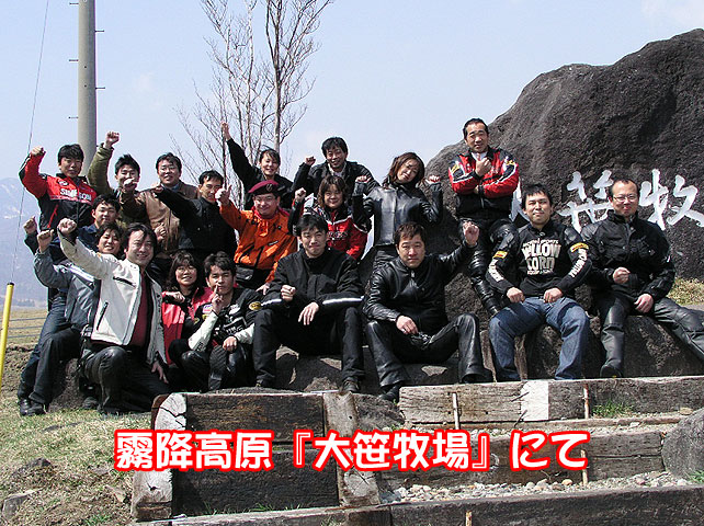 日光宇都宮道路で全員集合となったボク達は霧降高原道路を使って大笹牧場を目指しました。今回のニューフェイスは後列左から『×江戸川』さん『やまちゃん』さん『トモヲ』さん。前列左から『けび』さん『パンダ』さん『七吉』さんの六人。(もうお一方いたんだけど、写真にには映っていません、理由は其の弐でね!)皆さんフォーラムでの印象と比べてどうですか?今回はほぼ一人の遅刻者も出ず(誰も寝坊しなかった!奇跡!)スムースに集合することができました。