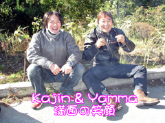 事故ったか、寝坊か…?と皆さんに心配を掛けた張本人は『オレ』『さーくん』の二人。前日藤沢で軽く呑むはずが、思わずほげってしまい・・・締りのない顔した二日酔い丸出しの状態での登場と相成りました。途中あまりの寒さにセ○ン○レブンで女性モノのパンストを二枚買って、重ね履きしていることは内緒だ。 |