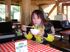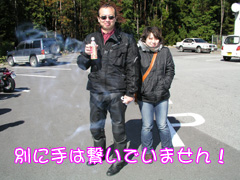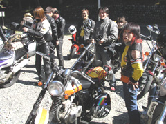 このイベントでは、バイクとツーショットの写真を撮ってくれたり、じゃんけん大会など様々なイベントがあったのですが、おっちゃん達にとってはキャンペーンガールとの撮影が一番嬉しかったようです。山梨名物のほうとうなどを食した後は、イベント会場をそうそうに退散し、ボク達は清里を目指しました。