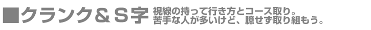 クランク及びS字という課題は、狭路における切り返しを練習しているわけだ。これをバンクを使って曲がってないかい?教習車はガード類がついているから、それでなくても狭い道では障害物に引っかかりやすい。従ってスムースに通過するには、極力アウトインアウトのコース取りをした方がいい。最初の左折はぎりぎり右側に寄ってから切り返しを行い、次はぎりぎり左側に寄ってから切り返しを行う。道の幅を最大限生かしたコース取りが成功の早道だよ。
